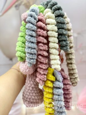 Pudrowy jednorożec z serduszkiem na brzuszku , wykonany ręcznie, z certyfikowanej hipoalergicznej włóczki dla dzieci.