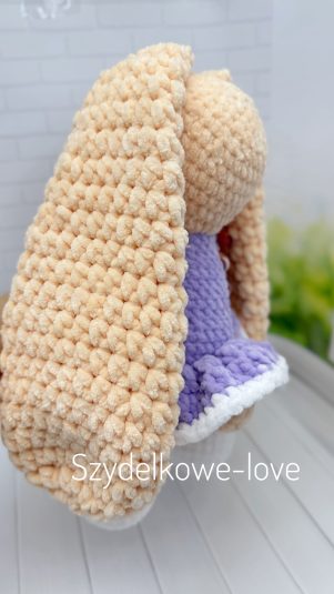 Królik fioletowej sukience Wykonane ręcznie, z certyfikowanej hipoalergicznej włóczki dla dzieci.
