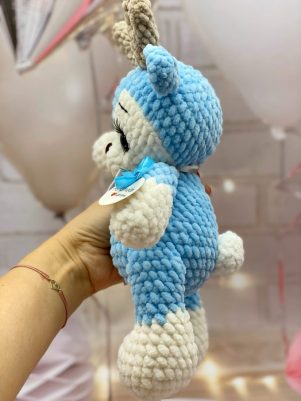 Niebieski Jelonek Wykonany ręcznie, z certyfikowanej hipoalergicznej włóczki dla dzieci.