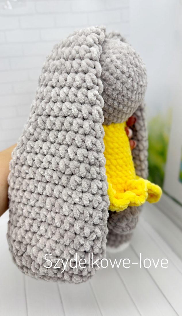 Beżowy Króliczek żółtej sukience Wykonane ręcznie, z certyfikowanej hipoalergicznej włóczki dla dzieci.