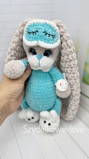 Królik śpioszek w piżamce Wykonane ręcznie, z certyfikowanej hipoalergicznej włóczki dla dzieci.